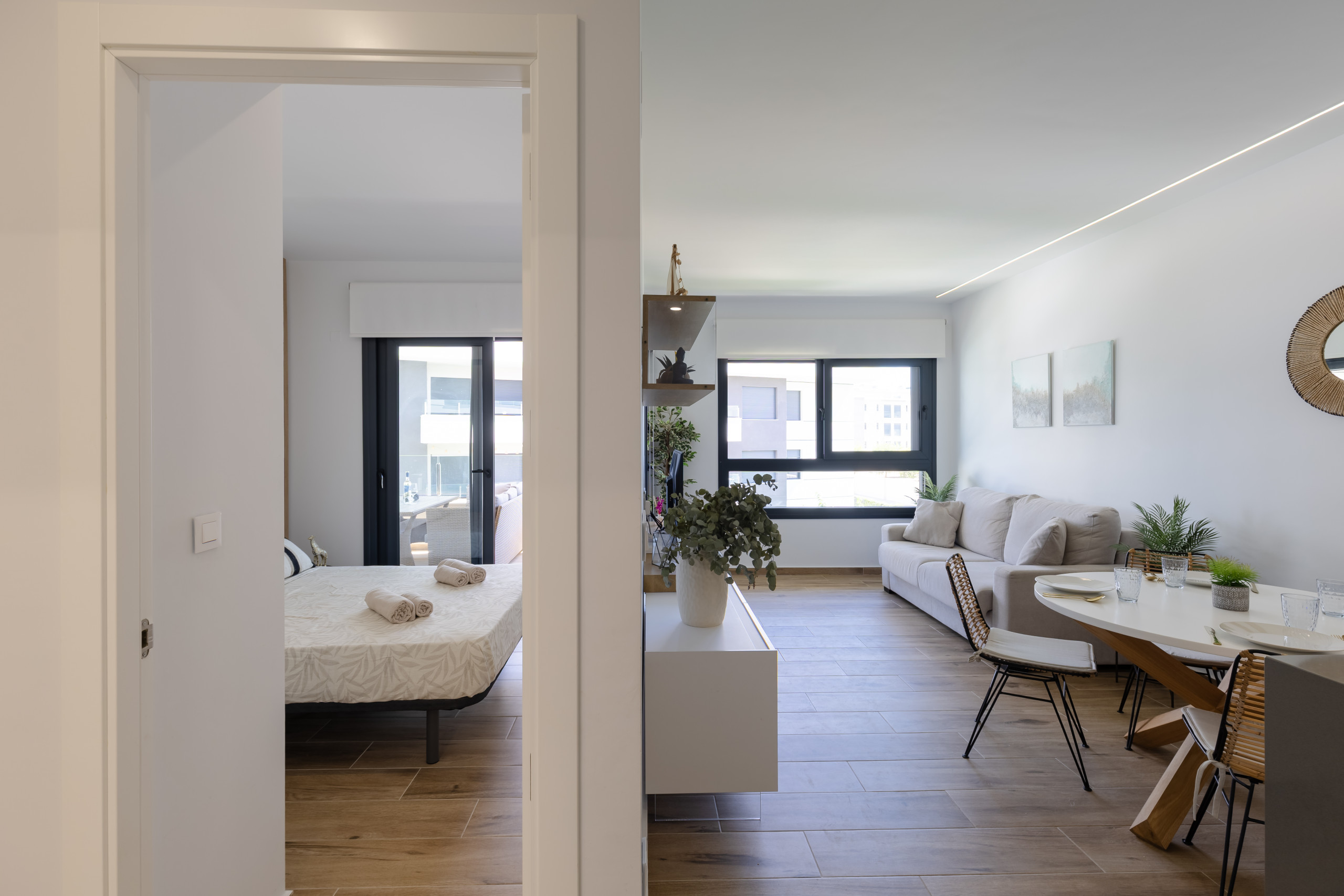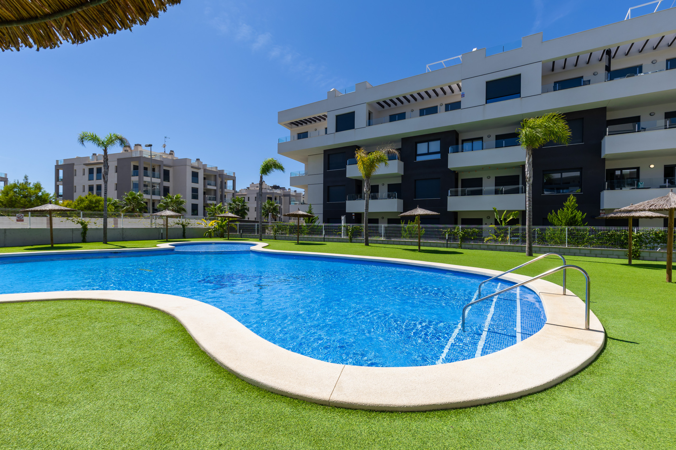 Stap binnen bij Cosy Casa Valentino — een moderne benedenverdieping appartement met directe toegang tot het zwembad, perfect gelegen aan de stralende Costa Blanca in Spanje. Of u nu geniet van koffie op het zuidwestelijk gerichte terras, afkoelt met een verfrissende duik, of de gouden stranden en kampioenschapsgolfbanen in de buurt ontdekt, dit is de ultieme mediterrane toevlucht.