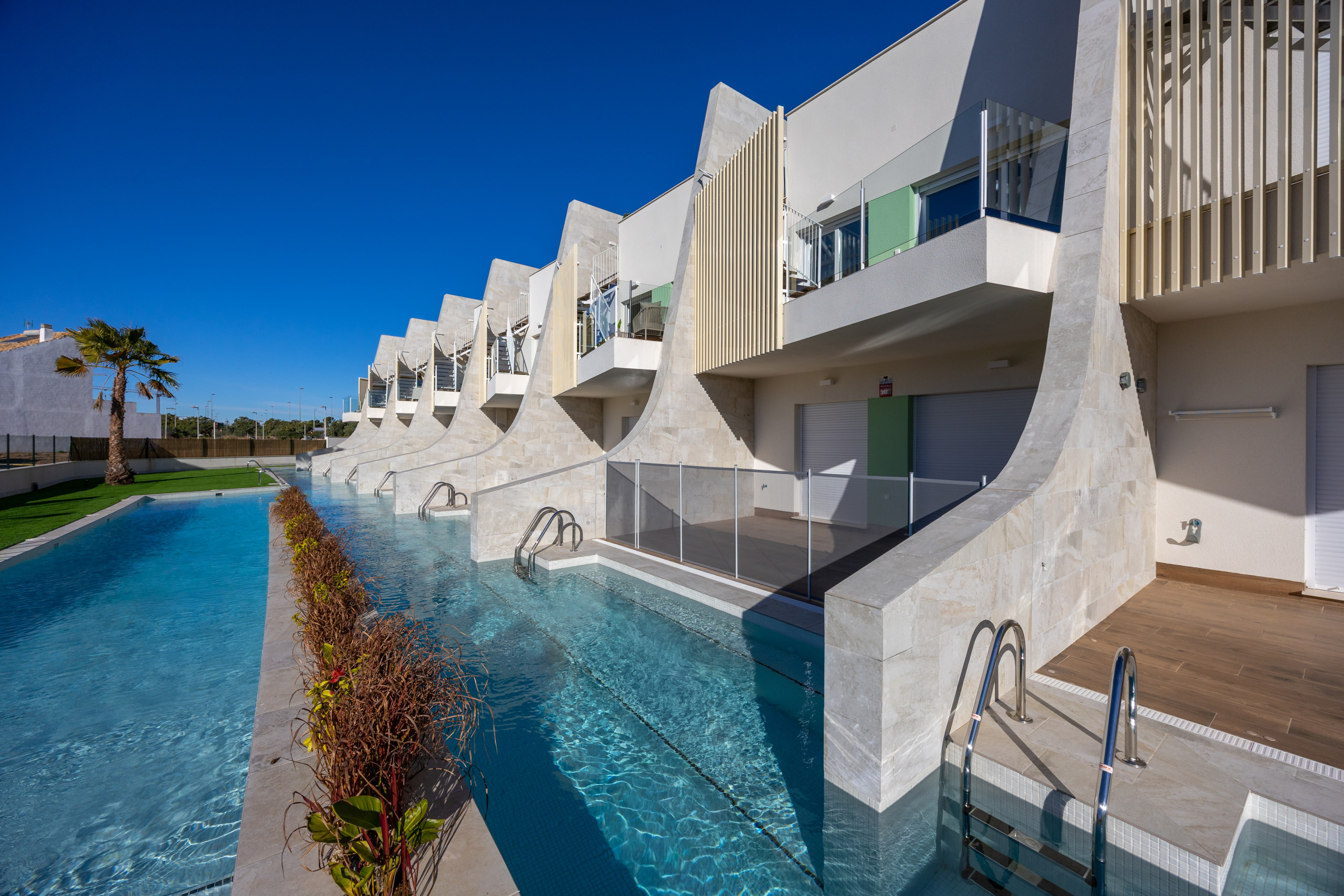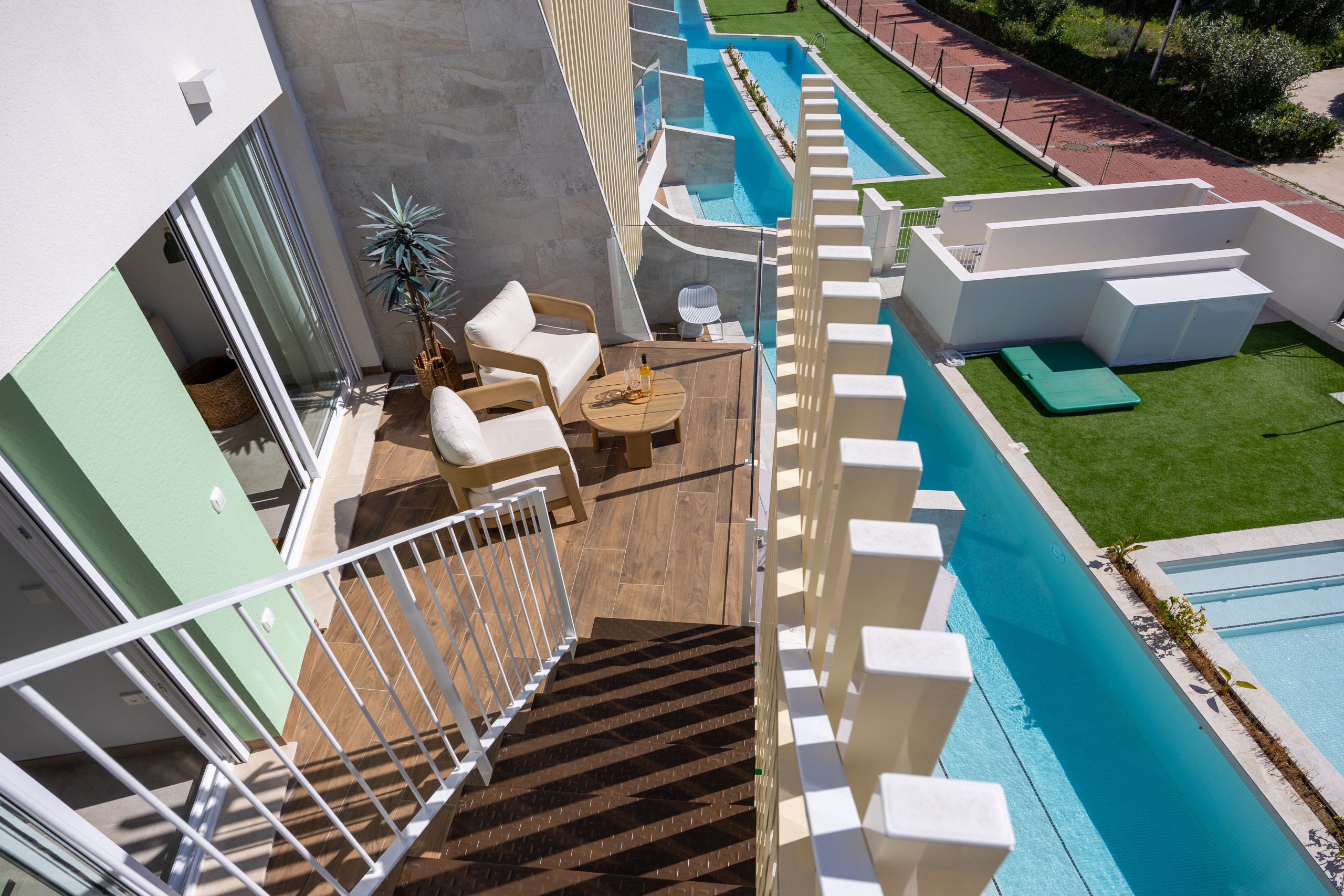 Geniet van de zwembaden die het hele jaar open zijn in een veilige en ontspannende omgeving, met rechtstreekse toegang vanuit uw eigen appartement.