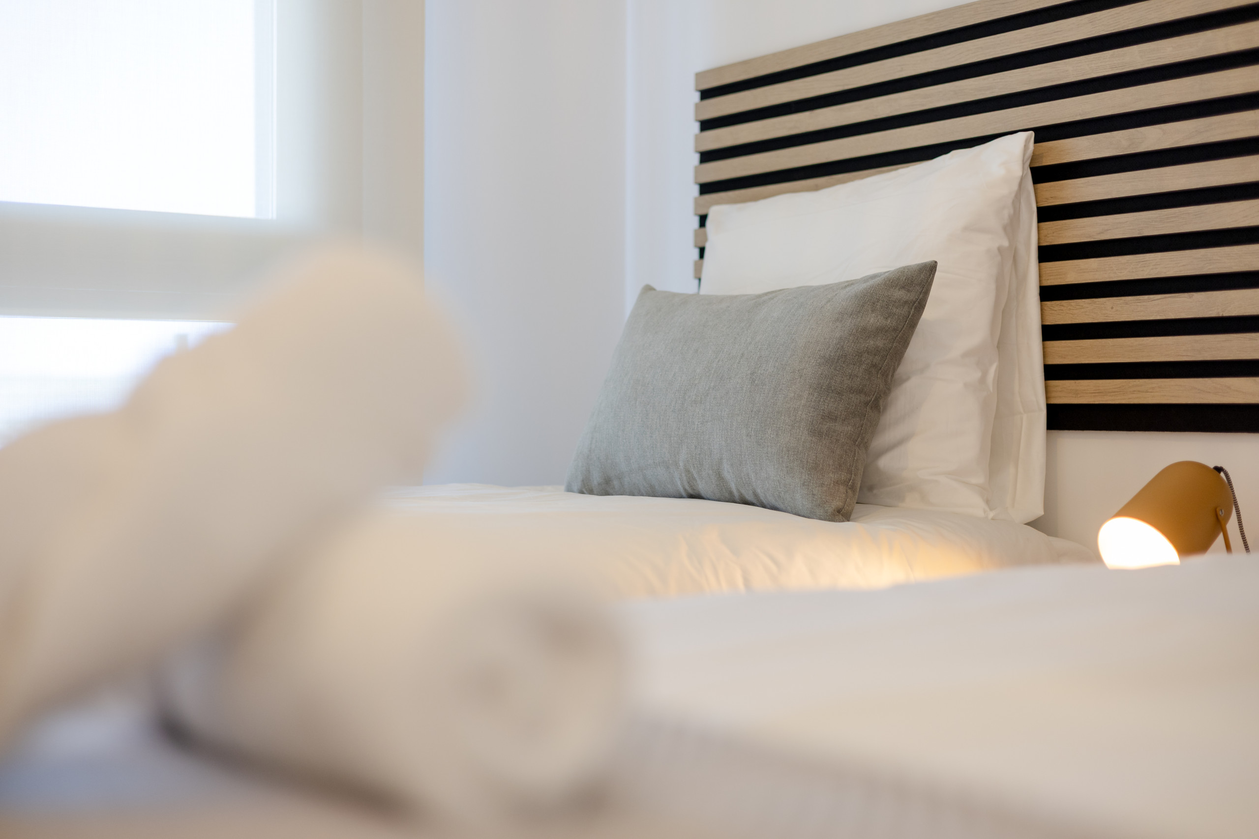 De kamers hebben hoogwaardige matrassen, gordijnen, sfeerverlichting en grote kasten.