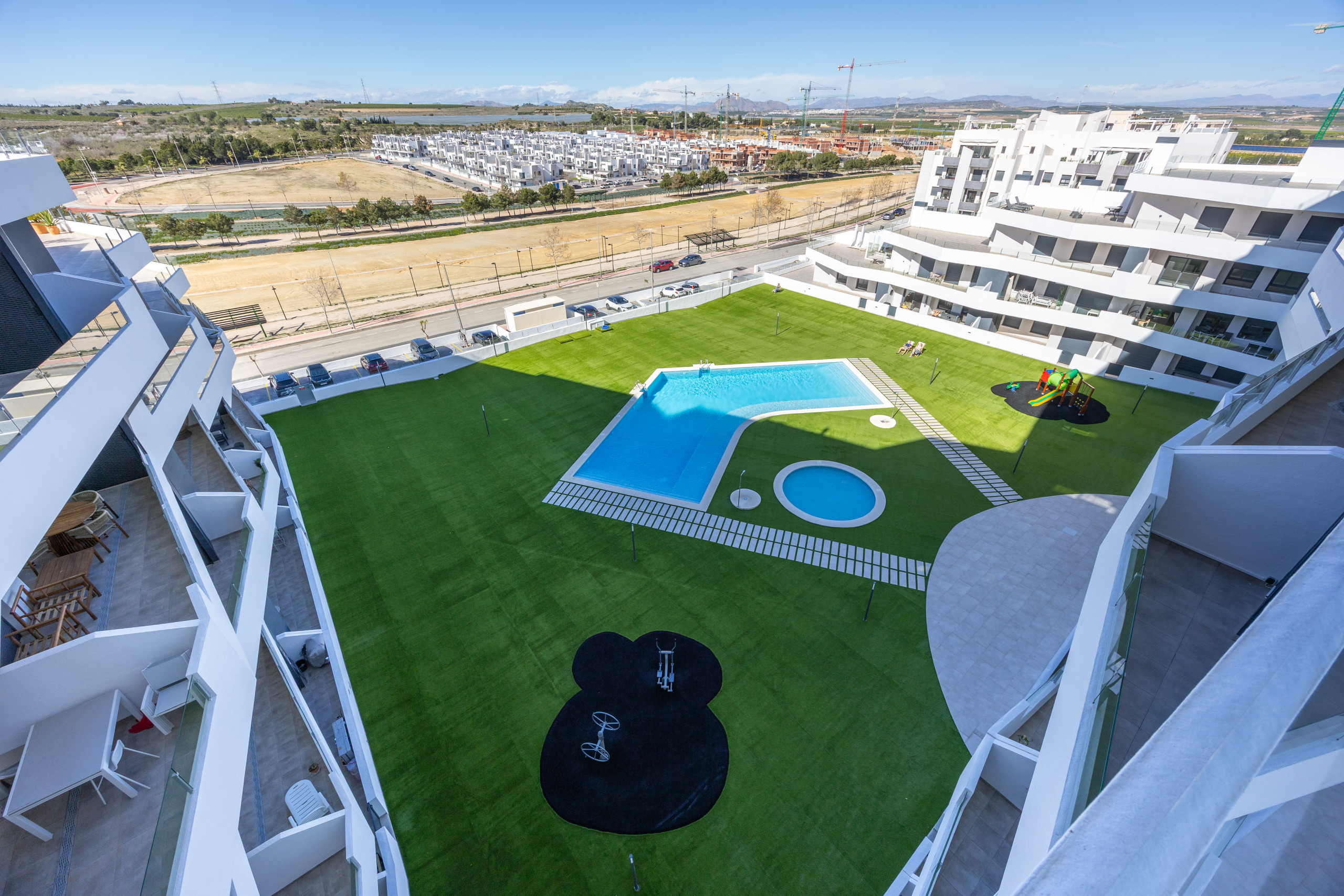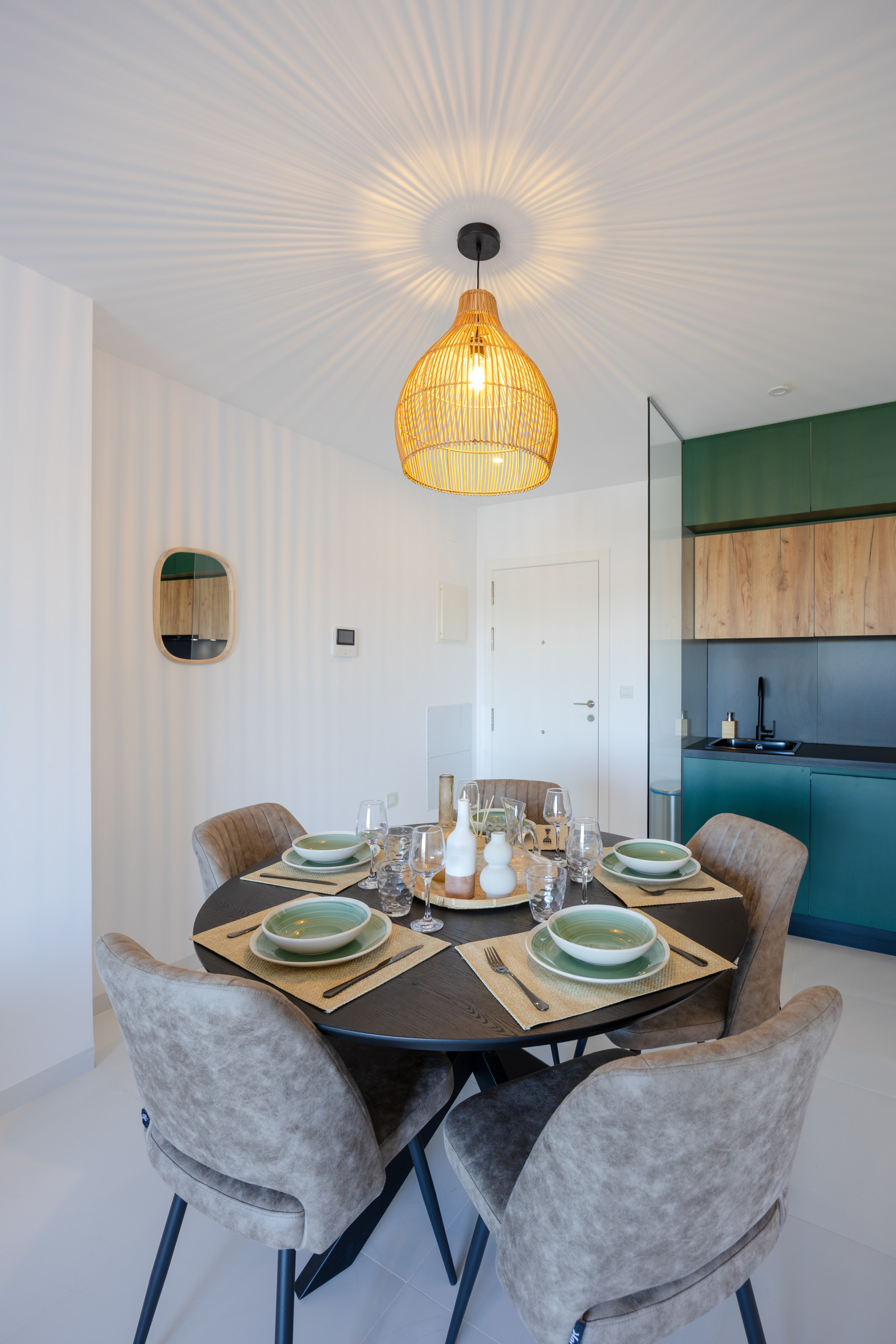 Geniet van comfort en luxe met stijl in dit appartement dat zich bevindt binnen een nieuw residentieel complex met zwembaden, een speeltuin en een kleine fitnessruimte.