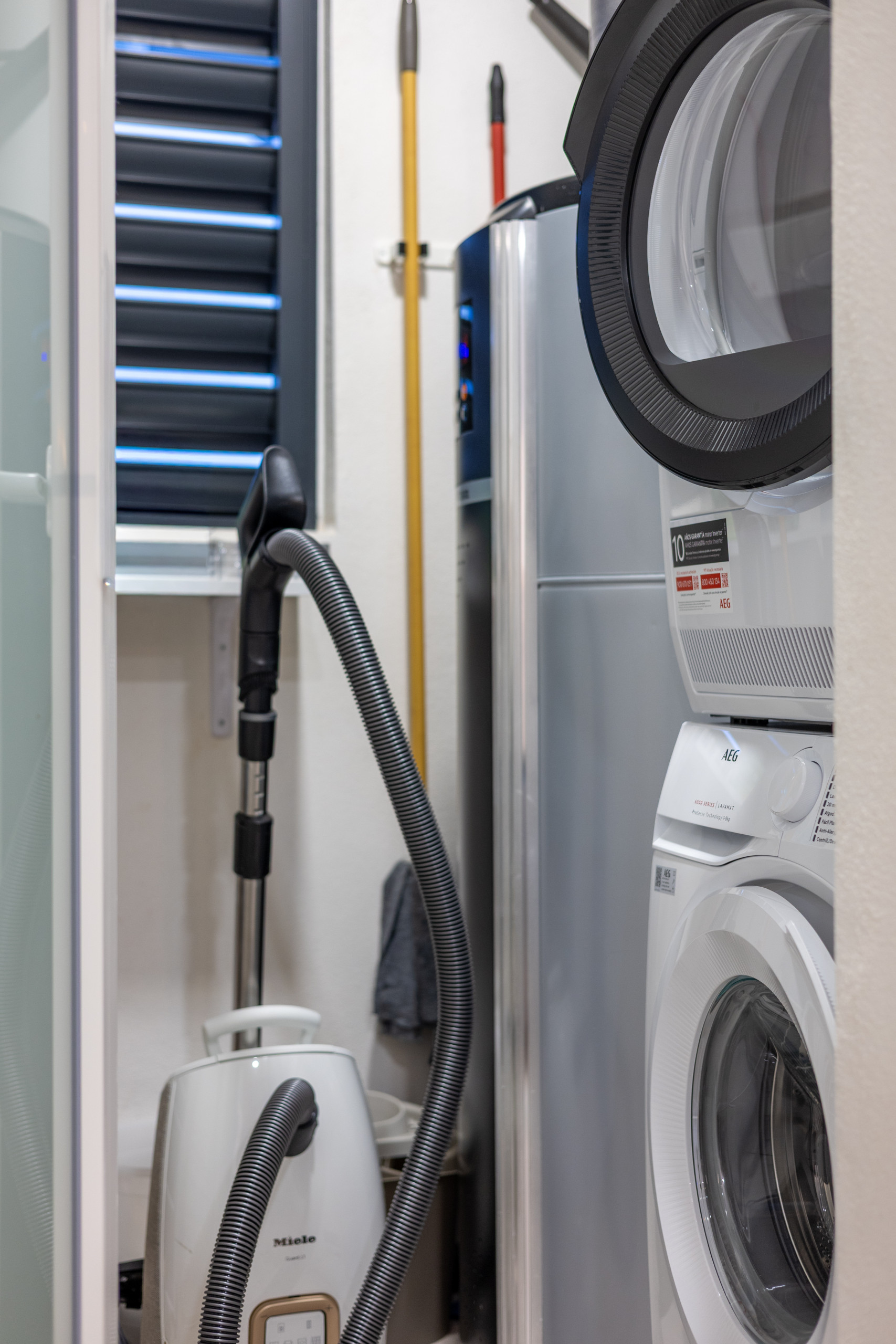 Wasmachine en droger in een afgesloten en gescheiden balkon