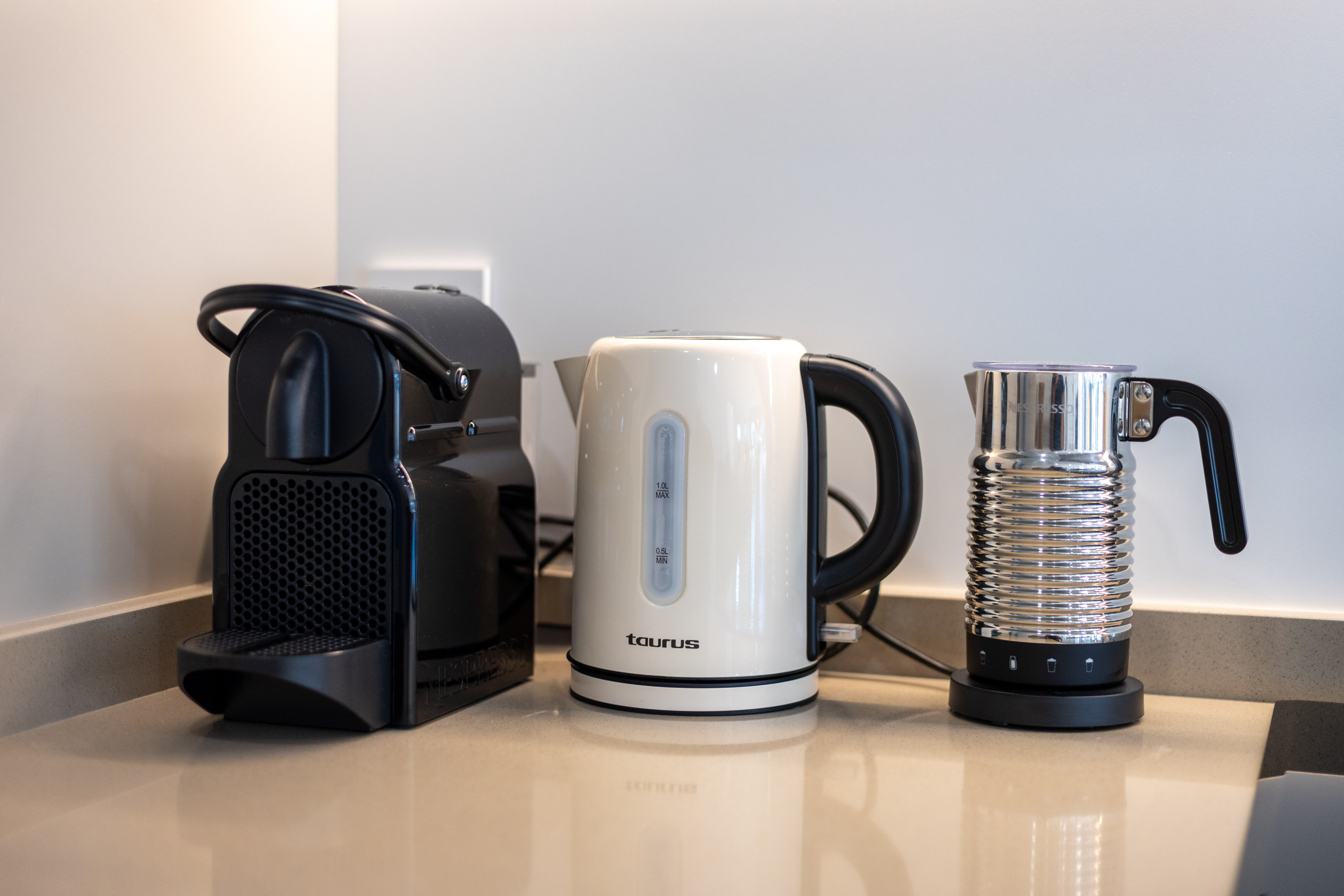 Premium huishoudelijke apparaten: koelkast, vriezer, oven, magnetron, vaatwasser, koffiezetapparaat, waterkoker en broodrooster