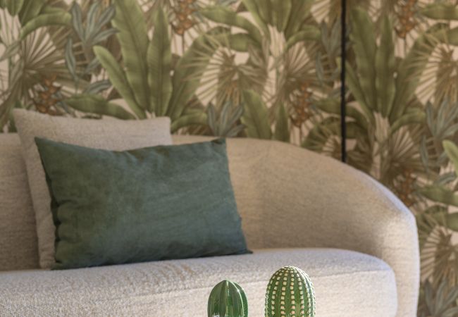 Ontspan op uw privébalkon met een comfortabele loungebank en ontspannende uitzichten op de weelderige tuin en zwembaden.