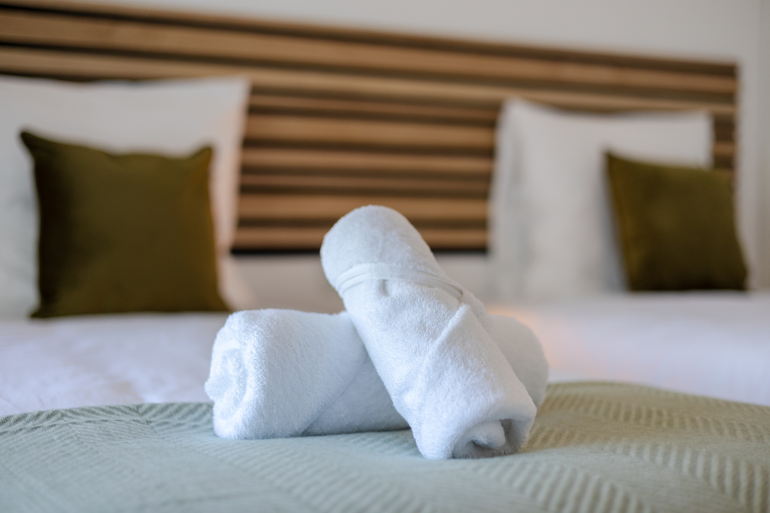 Todas las habitaciones cuentan con colchones de alta calidad, iluminación cálida, cortinas y armarios espaciosos.
