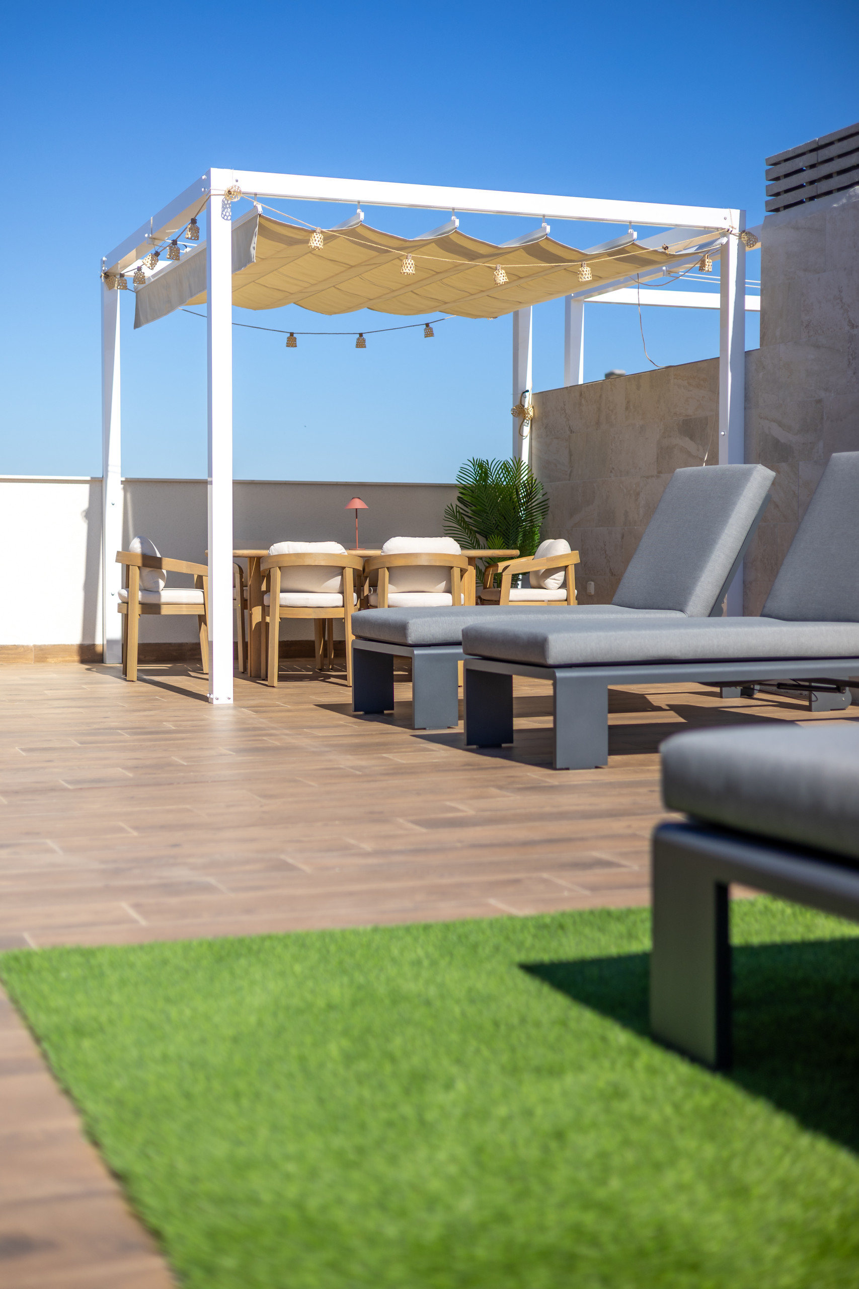 Private terrace with jacuzzi on the roof, garden furniture, outdoor kitchen and barbecue