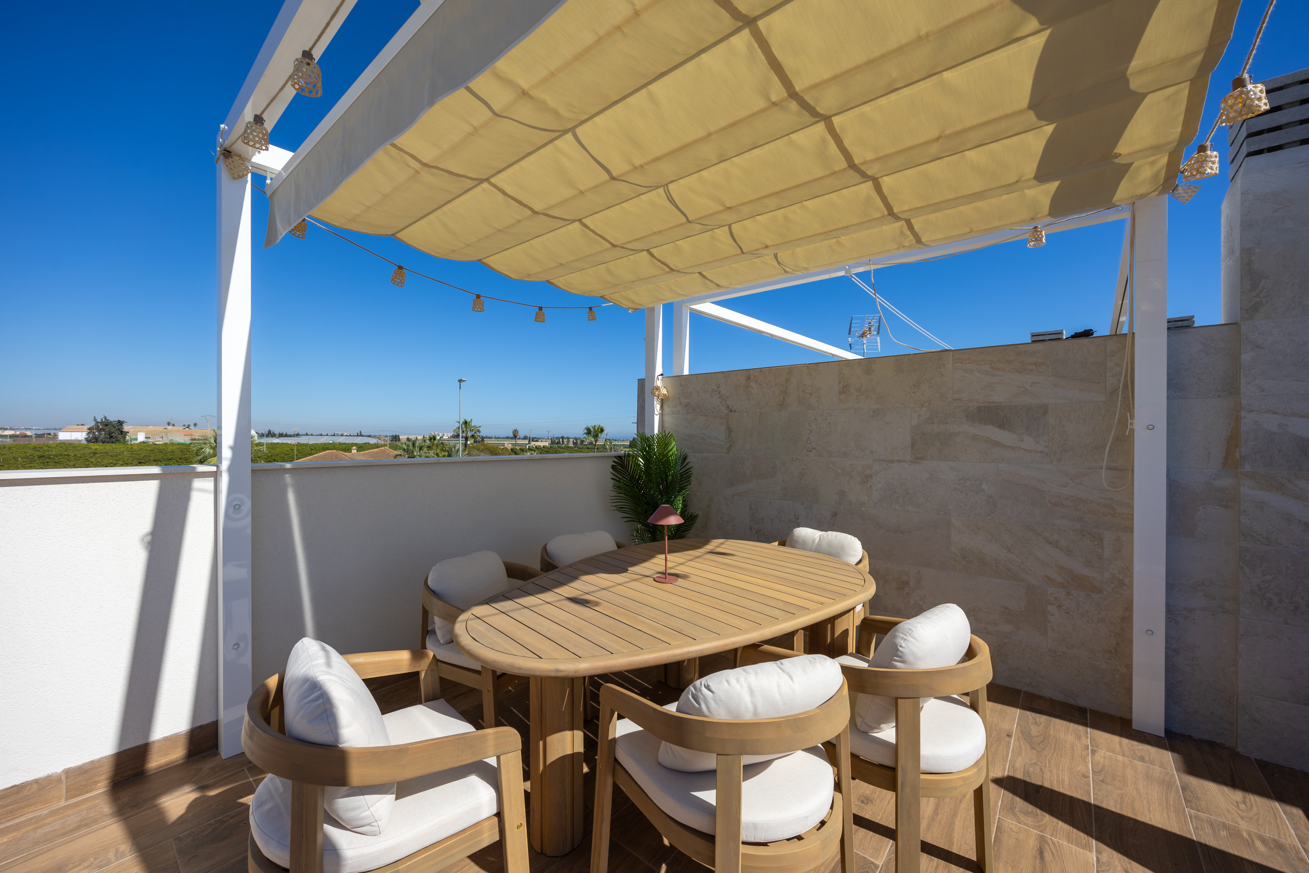 ✨ Marina Garden - Cosy Apartment with Private Terrace ✨ Enjoy unforgettable holidays in this elegant apartment in Marina Garden, an exclusive complex with communal swimming pools, perfect for relaxing and enjoying the Mediterranean sun. 🏡 Your Refuge on the Costa Blanca Bright and modern, designed to offer maximum comfort and style during your stay: 🍽️ Modern and Fully Equipped Kitchen Open-concept kitchen with: Fridge and freezer Oven and microwave Dishwasher Kettle, coffee maker and toaster Ample storage space and complete utensils 🛏️ Rest Areas Master bedroom: double bed, en-suite bathroom, spacious wardrobe Second bedroom: two single beds with spacious wardrobes Extra sleeping space: comfortable sofa bed in the living room with Smart TV All rooms have high-quality mattresses, blackout curtains, and spacious wardrobes. 🚿 Spa-Style Bathrooms Modern bathrooms with rain-style shower, ideal after a day at the beach or golf. 🌿 Private Exterior and Relaxation Area Balcony with views of the garden and communal swimming pools Private terrace with garden furniture and outdoor kitchen 🏠 First-Class Amenities Air conditioning cold/heat High-speed WiFi Washing machine and clothesline Bed linen and towels included Hair dryer, iron and vacuum cleaner Smoke detector, for your safety 🏊 Community Pools Enjoy the pools open all year round in a calm and well-maintained environment of the Marina Garden complex. 📍 Perfect Location Located in Pilar de la Horadada, ideal for enjoying the Mediterranean lifestyle and exploring the region: Mil Palmeras Beach – 6 km Playa El Mojón - 3.5 km Lo Romero Golf Course - 5 km Pilar de la Horadada Centre - 1.5 km Supermarket Manper - 0.7 km Natural Park Río Seco – 5 km Alicante Airport - 60 km Train Station Las Balsicas – 20 km Health Centre - 2 km ✨ Book now and enjoy memorable holidays with elegance, comfort and an unbeatable location on the Costa Blanca. 🌞 ℹ️ Practical Information Security deposit: £200 (temporary card block, released after check-out) Standard check-in: 15:00 - 18:00 (early or late check-in: supplement of €35)