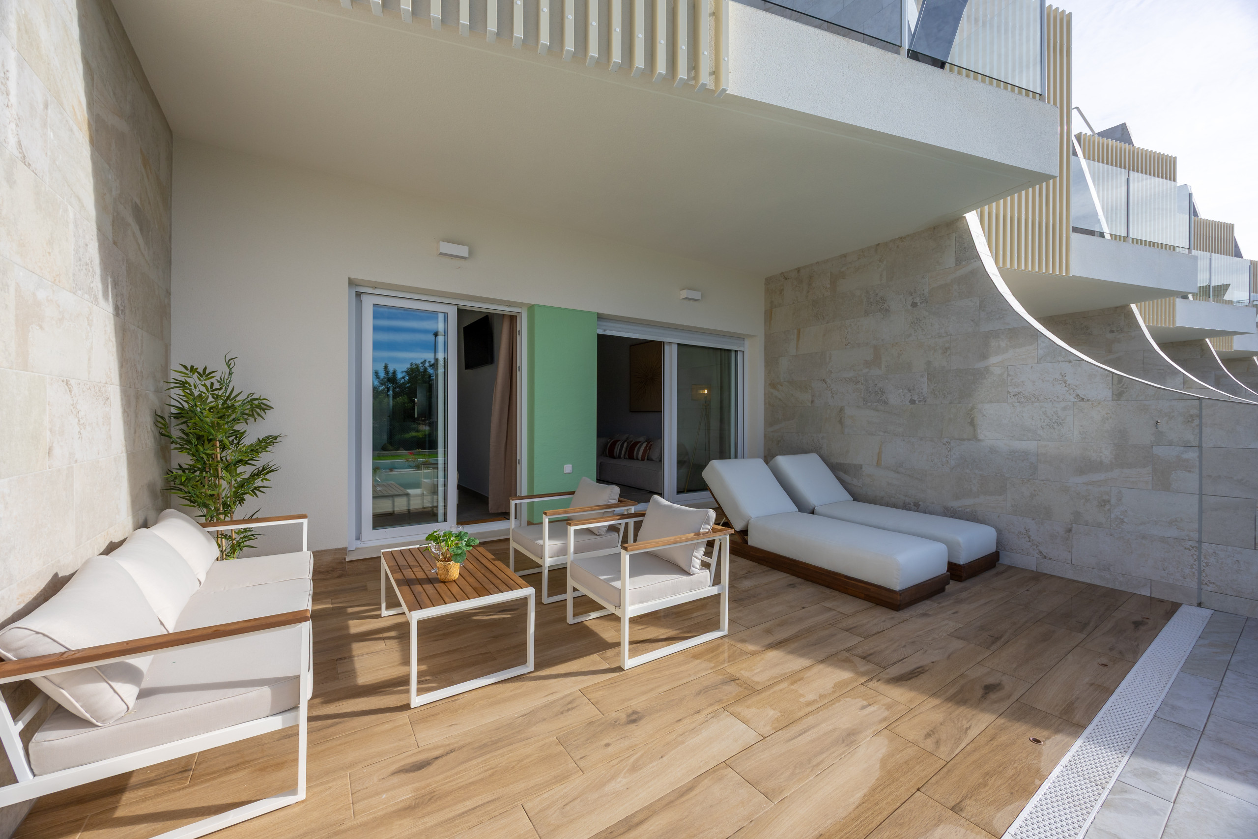 Private terrace of 19.5 m² next to the swimming pool